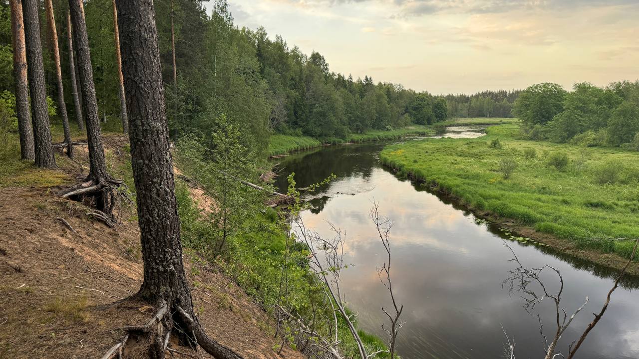 Разместились мы на утесе на берегу реки Шлина в сосновом лесу